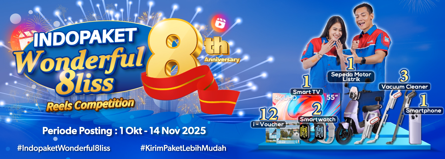 Dalam rangka memperingati Hari Ulang Tahun Indopaket yang ke-8, kami mengadakan Instagram Reels Competition untuk semua sobat Indopaket.